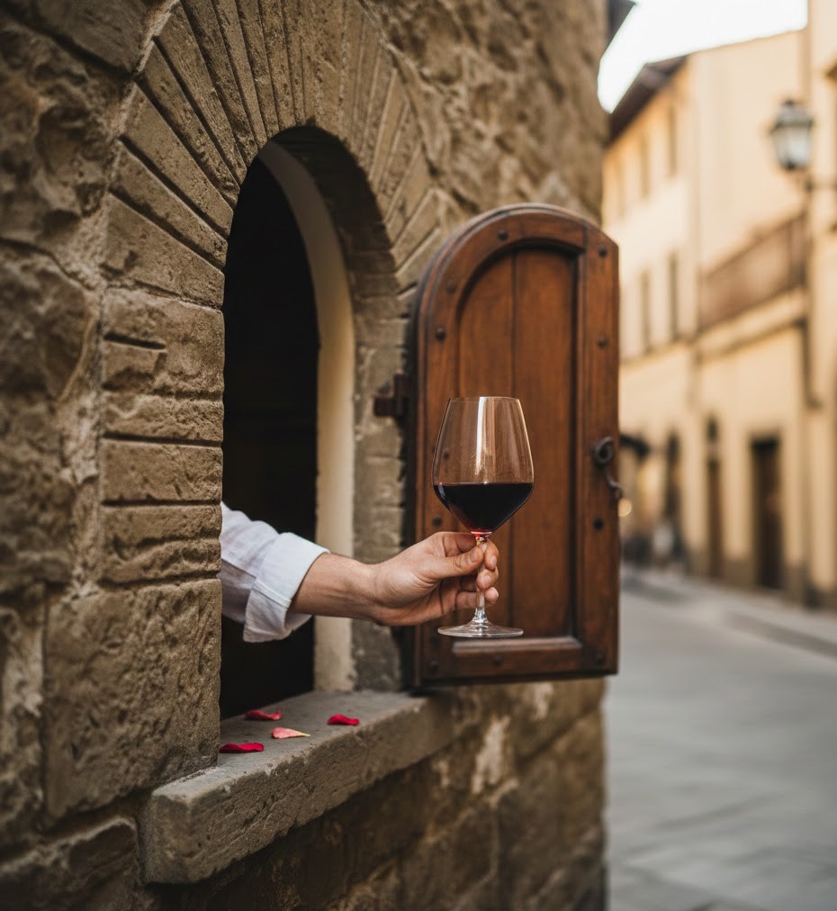 The path leads naturally into the lively Piazza Santo Spirito, the soul of local social life. After admiring the minimalist elegance of Brunelleschi’s Santo Spirito Church, it’s time to indulge in authentic street food; whether it’s a freshly baked schiacciata or a savory lampredotto sandwich, these flavors define the Florentine palate. To crown the experience, join the most unique local ritual. By ringing the bell at their historic Wine Window (Buchetta del Vino), you’ll receive a glass of wine through a tiny opening in the wall, a charming Renaissance tradition that remains the perfect way to toast to an unforgettable, authentic Florence.